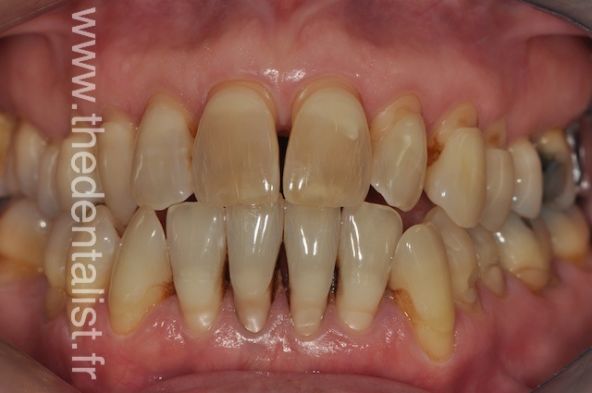 Patiente de 43 ans qui consulte pour demande esthétique. De nombreux signes de pathologie occlusale sont recueillis à l’examen clinique alors que la patiente n’exprime aucun symptômes dans ce domaine. Des investigations complémentaires sont nécessaires pour préciser le diagnostic fonctionnel. Un traitement occluso-articulaire devra être envisagé avant toute manœuvre irréversible de dentisterie restauratrice.